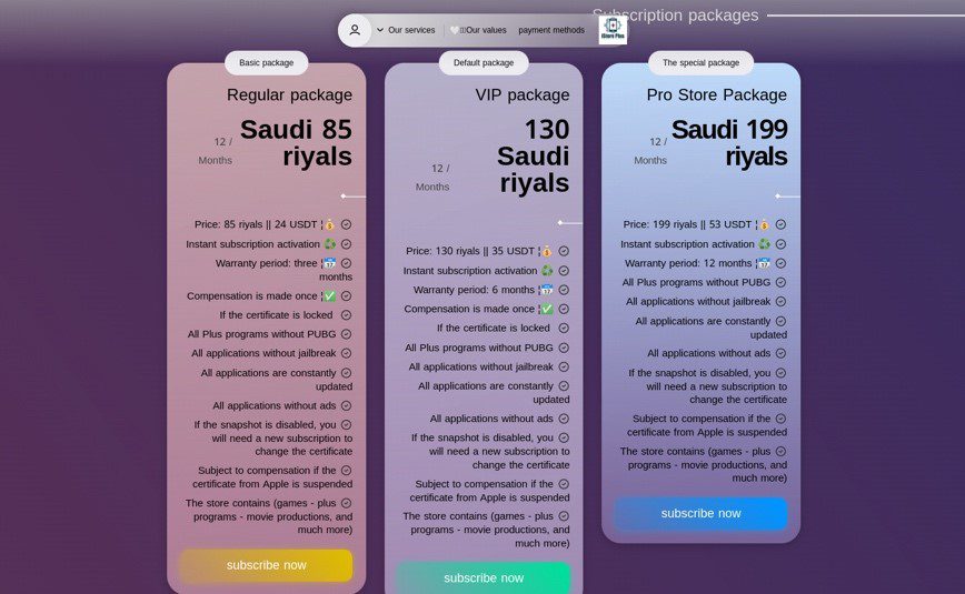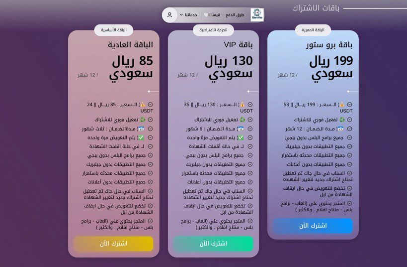 Figure 1: istore-plus[.]net selling subscriptions to access a modified version of TikTok (Arabic left, English translation right)