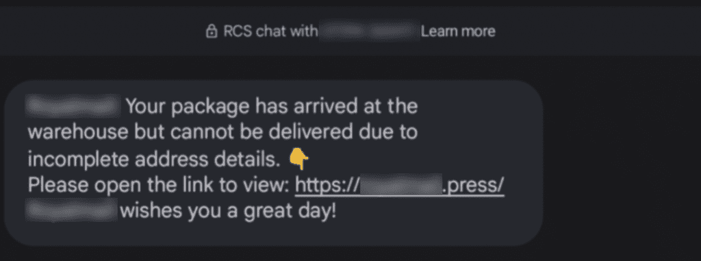 Unlike standard SMS-based phishing attacks, darcula lure messages typically use the alternative communication protocols RCS and iMessage: